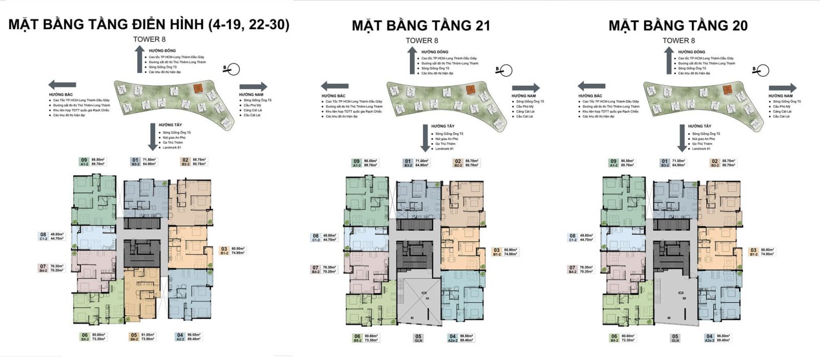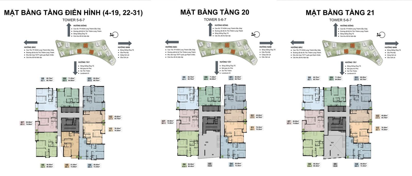 Thiết kế đẳng cấp – Không gian sống thượng lưu Căn hộ 1-3 phòng ngủ, Duplex, Penthouse với diện tích từ 49,14m² – 151,19m², bàn giao nội thất cao cấp. Mật độ chỉ 9 căn/sàn, không đối diện, đảm bảo sự riêng tư và tầm view thoáng đãng hướng sông, Thủ Thiêm, và Landmark 81.