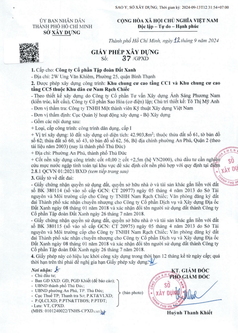 Pháp lý của dự án The Privé được xây dựng minh bạch và hoàn thiện, đảm bảo quyền lợi tối đa cho khách hàng, đặc biệt trong bối cảnh thị trường bất động sản TP.HCM. Dưới đây là các thông tin chính về pháp lý của dự án, được phát triển bởi Tập đoàn Đất Xanh Group tại Nam Rạch Chiếc, phường An Phú, Quận 2, TP. Thủ Đức: